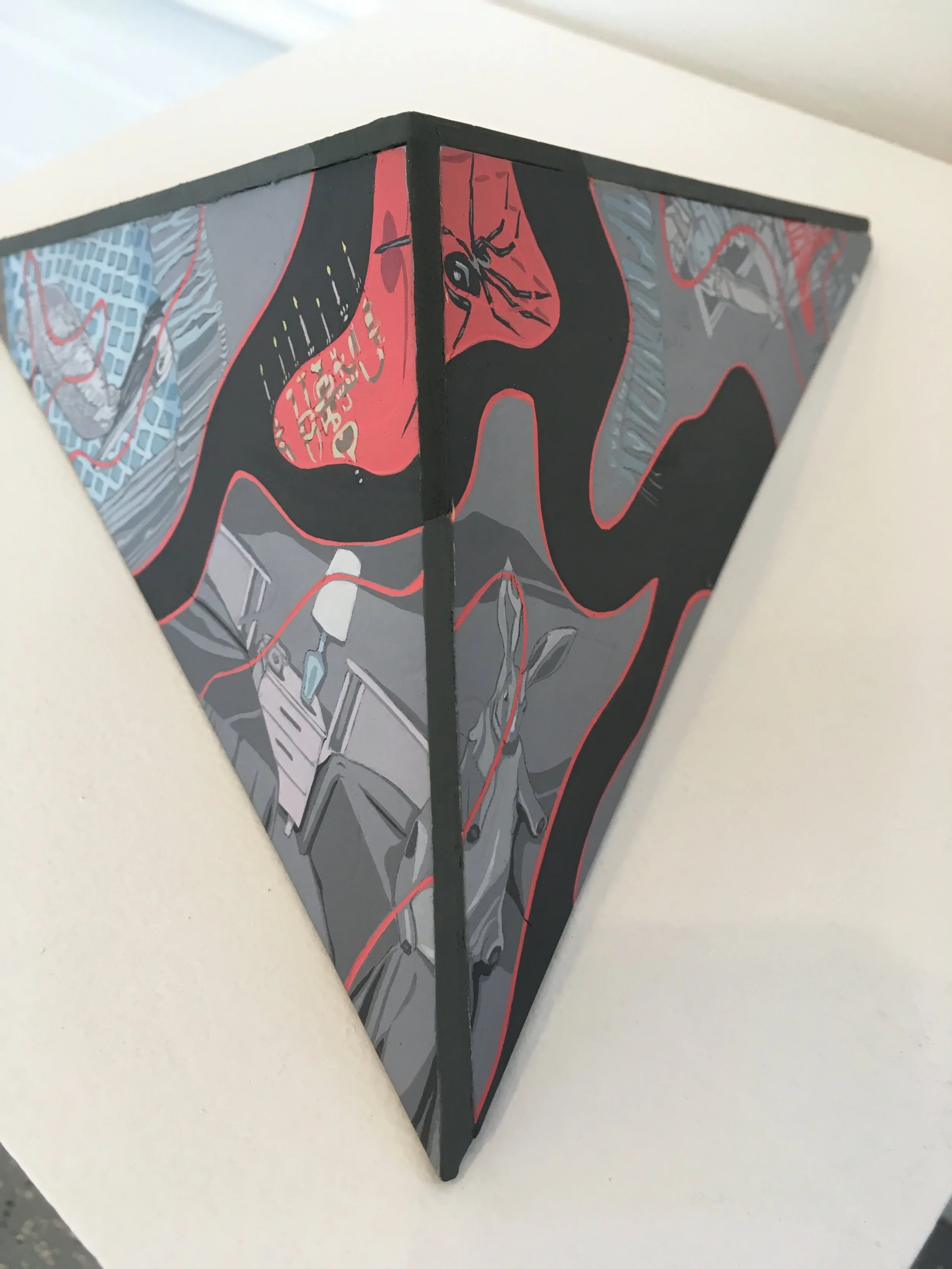 Spheres/Esferas are wall mounted with pyramidal paintings